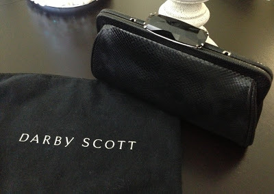 It was near Christmas; so she took my husband into the warehouse and let him choose from a selection of clutches to give to me. He chose this lovely snakeskin clutch with a black onyx clasp.