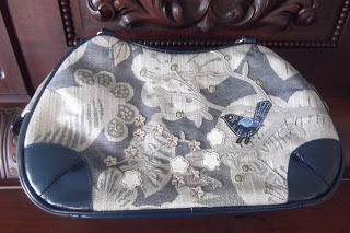 I'd gone to RWA in Orlando and in the gift shop, I'd seen one exactly like it by Vera Bradley. The only difference was hers had been done in her fun fabric. I (actually) resisted and didn't buy it there, but did when I came home. I carried it for a bit and didn't like it at all. No cool pockets. Everything was lost in the bottom. I gave it away.