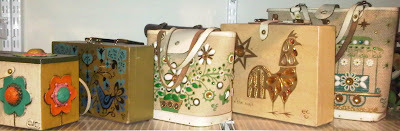 Cool! Now, I am a collector. And am obsessed. Suddenly, in every antique store, I find an Enid bag I have to have. One clutch I found came from a mall. It had been manufactured by the Tandy Corporation after they bought Enid Collins. Here's a photo of all my treasures: