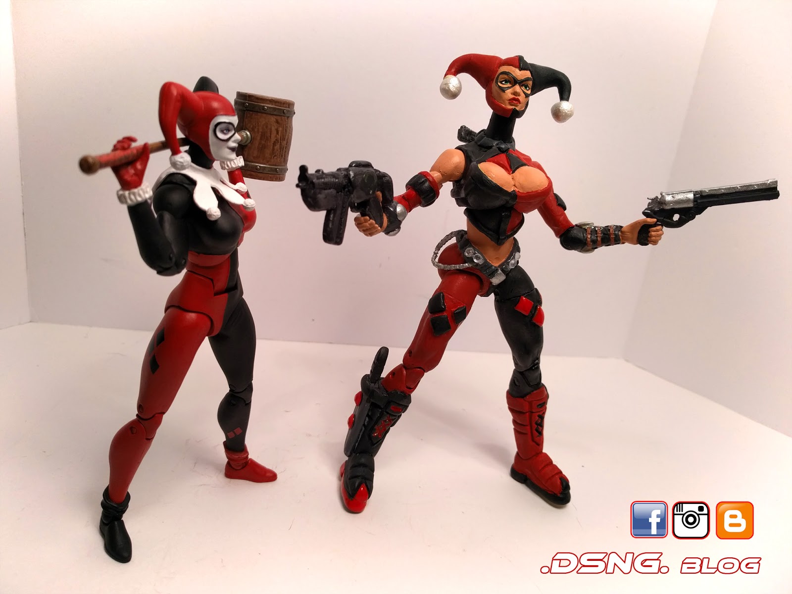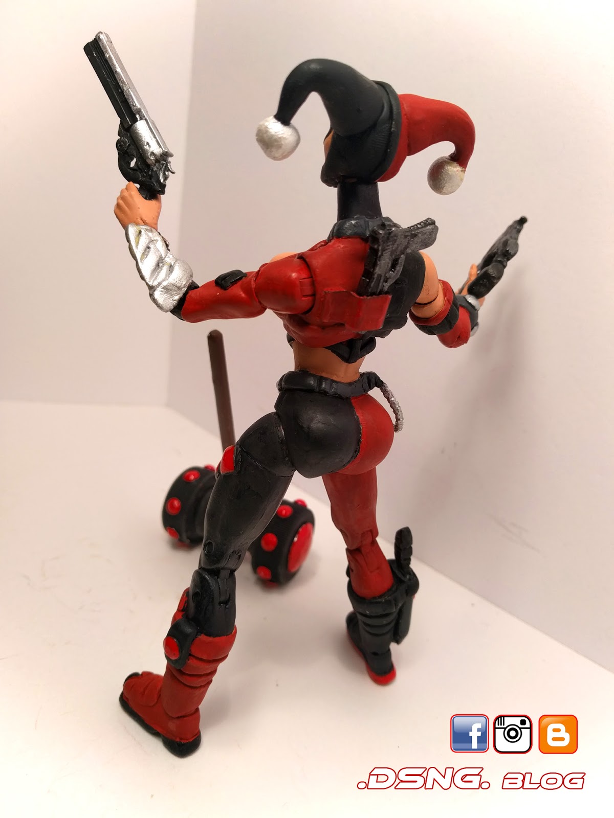 Another new custom for 2017! Presenting my hybrid version of Harley Quinn!I have just between 5 – 7 favorite DC Comics characters and Harley is one of them. This one took a few months, since I finished her and then still had a feeling that something was missing. Eventually I pulled her out a few days ago and added the silver pocket chain and an extra gun.