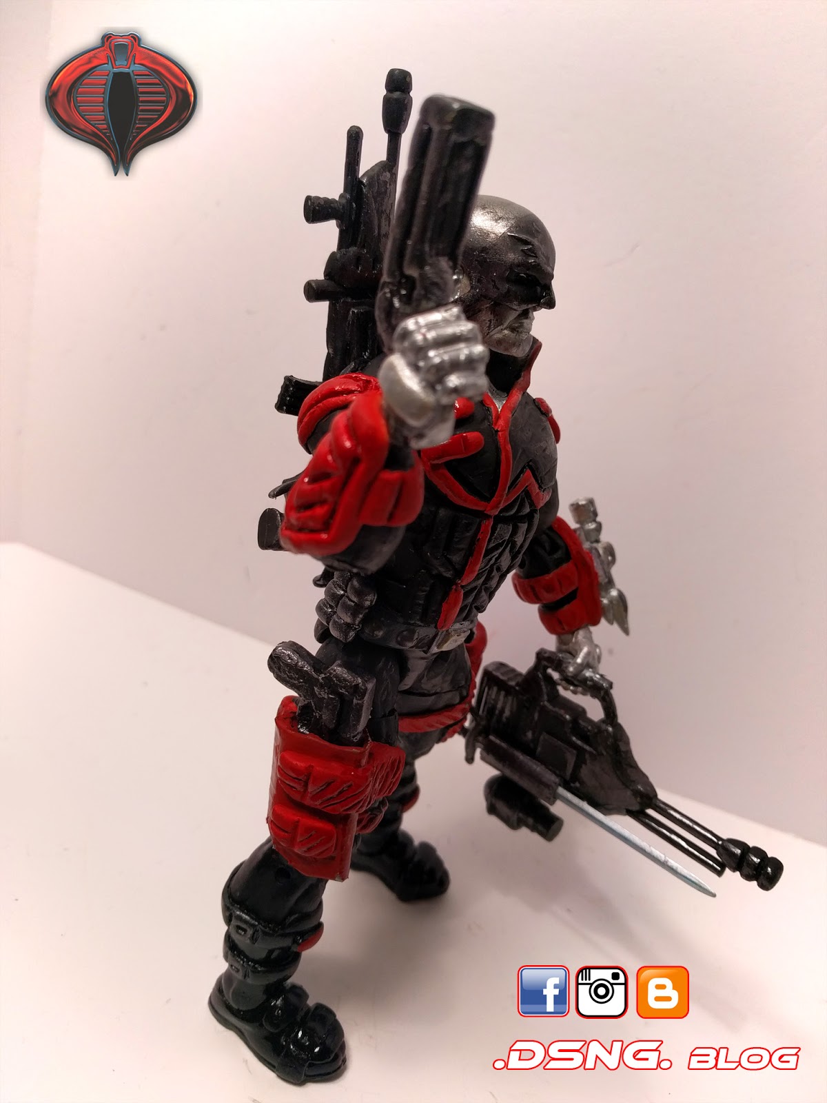 Finally, I can post this badass!! I’ve had this Snake Eyes on the shelf for over 2 months, but I just didn’t have his brother ready [Storm Shadow]. And since I wanted to post them at the same time, I had to wait patiently…. Anyway, the base figure for this Snake Eyes was Marvel Legends Deadpool. That is a very common base. But once you take a closer look at my design, you’ll realize that it is original, since that is what I strive to usually do with my customized “GI Joe redesigns”. And that way, an old character looks fresh and unique.