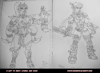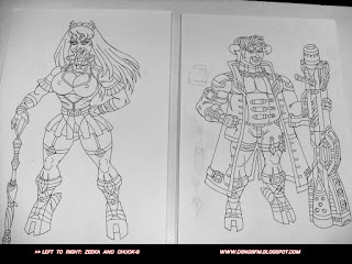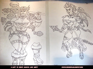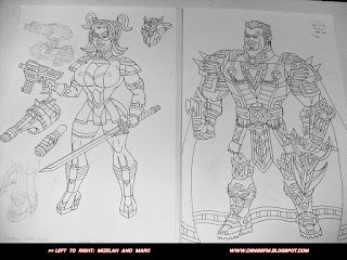 Those familiar with the ebooks know that the Paragons are potent higher beings in the DSNG Makuran Galaxy. The inked art gets scanned and cleaned up in Photoshop, where it is colored. I've added some variety to the designs; hence some characters are thick / voluptuous, while some are slender and others are chubby... Stay tuned, more to come later...