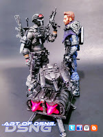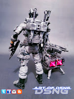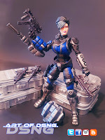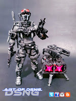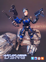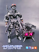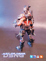 The base body for Trident was the Valaverse Garisson Calvary. And I sculpted the new body armor for him, while adding several blades from ebay. The guns came from ebay as well, while I sculpted the lines on his mask. The backpack and assault rifle came from the Cobra Crimson Guard.
