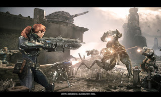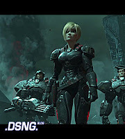 Ah, the joys of an animated movie, presented in 3D.... Often those big budget productions hit the nail on the head, as the studios and animators come up with something that appeals to a mass audience. And Disney's Wreck it Ralph fits into that category. Yes, I did see it, over the past weekend. But I only saw it for one reason: Heroes Duty [a sci fi arcade video game]; and specifically, I wanted to see Sergeant Tamora Calhoun, one of the female protagonists in the new animated movie. Although she had a B-role in the 3D-flick, I enjoyed her performance so much that I did a fan art poster of her [shown on the right]. Tamora was perfectly rendered, as a sexy & strong character; even her "walk cycles" were done in a sensual manner, much better than the cycles you find in some modern Third-Person-Shooters, MMOs & fantasy video games.