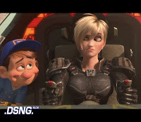 Being a bad-ass Space Marine Commander, Tamora has one of the craziest / saddest back-stories in cartoon history. I don't want to spoil it for you; you'll just have to see it to believe it in the movie theater. Anyway, Tamora later has a budding romance with FixIt Felix, another quirky character in this animated movie.