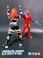 The base body was the Marvel Legends Retro Black Widow. And I had to sculpt her body and add the white armored pieces, with white-colored putty. Her hair was repainted and her handguns were custom-made, while she has a dagger on the left hip and an extra gun held on the right. She was hand-painted with Tamiya paints. The pics show her with Ironman, and with the Cobra Coil Cycle belonging to Baroness from the GIJoe Classified line. Thanks for looking!