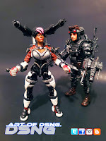 The two soldiers are from the Valaverse Action Force Toy line, which is an Alternative to the GIJoe Classified Toy line. Just Google them. And from left to right, their names are: Rollout and Condor.