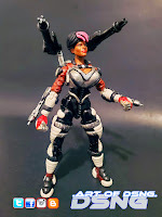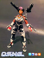 Another new custom toy! This is an original character named Kaya Fullclip from the DSNG Sci Fi Megaverse. She's supposed to be a Nova Trooper, like a police state patrol officer. She was based on the GIJoe Classified SnakeEyes Origins Scarlett body.