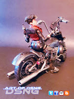 I sculpted her armor, and her boors. And I added straps and pouches to her. The guns came from ebay, while the crossbow was from another toy, and it was upgraded. And I sculpted her hair with green stuff putty. She was hand-painted with Tamiya paints. Thanks for looking! Enjoy and share!