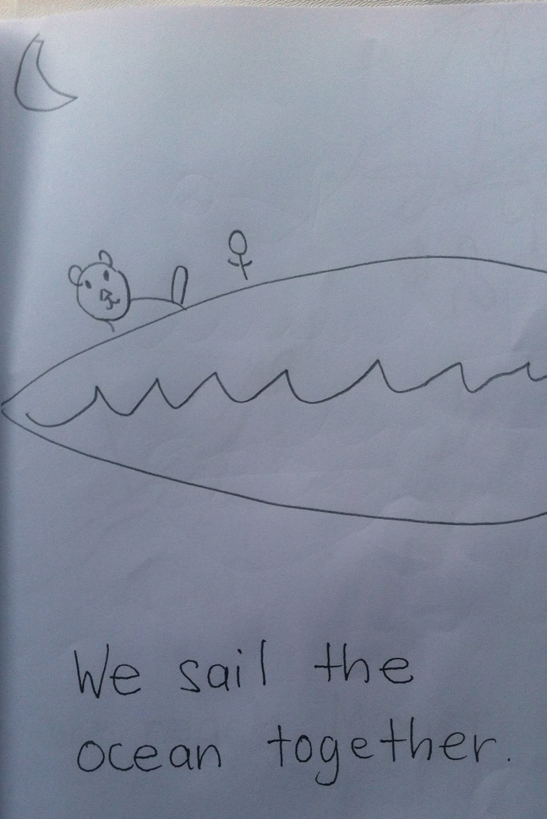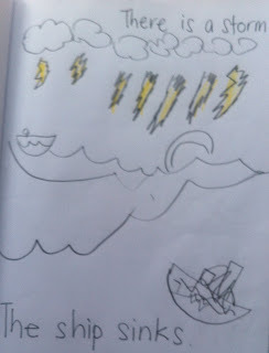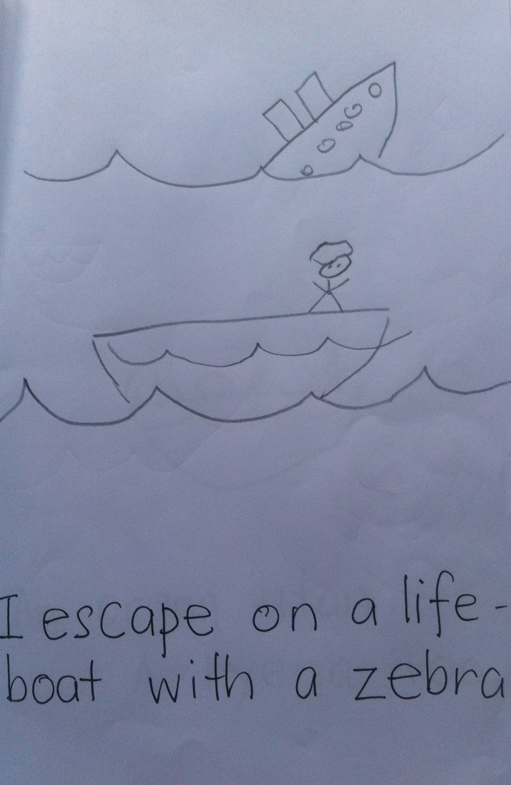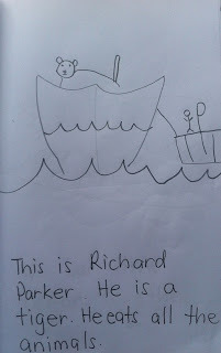 Ikesha was very taken up by the movie Life Of Pi. Being six years old, she could not read the novel so I agreed to write a simpler Life Of Pi for her to read if she would draw the story.
