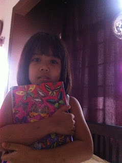 The girls and I are always planning some activity of the other. It is a ruse to keep them busy and focused on a project. However, at the back of my mind I am always devising ways to keep my kids creative and innovative while having fun - and some sense of accomplishment.Last weekend, after a friend had asked what to do with old exercise books from school, I remembered I used make Iman and Inas notebooks. I tore out the used pages, stapled the books together cover to cover and wrapped them in wrapping paper. About five of them did nicely.Using a cardboard for the cover ensured that it lasted and gave a solid finish to the notebook.Here is Ikesha's notebook.