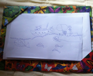 We have a lot of old drawing blocks as well. So I taught Ikesha to wrap the drawing block covers with the matching wrapping paper. I made two corner pockets to hold her drawing paper. Ikesha now has a drawing board to match her notebook.