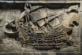 I visited Borobodur in June this year with my daughter Inas. Without a guide, I despaired at ever finding the actual illustrations (miles of them all around the temple) I was interested in, i.e. the above scenes. But I did! Just about the time I was to give up, I turned the corner and found, first the ship! Then the court life illustrations. The pot above, is proof that centuries later, and we still love the same beautiful things in life. I have such terra-cotta pots in my garden and the house.