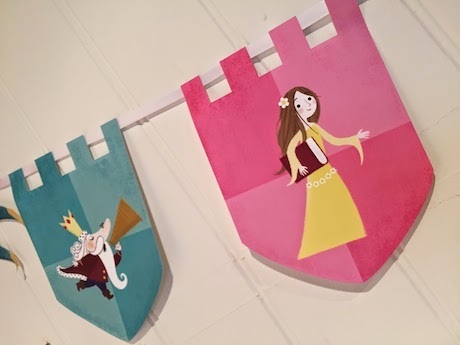 To celebrate the publication of Princess Daisy & the Dragon & the Nincompoop Knights last Thursday, we held a book launch party at Pickled Pepper Books. We put up bespoke bunting, balloons, and baskets of goody bags along with an exhibition of original artwork and prints from the book.