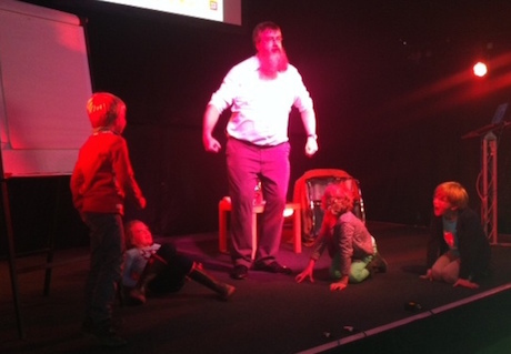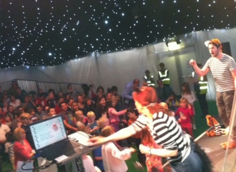 Tracey Corderoy and Steven Lenton performing at the 2014 Hay Festival