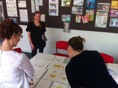 Louise, Steph and Ola at the day of the arrival of Ross Collins’ artwork for There’s A Bear on My Chair