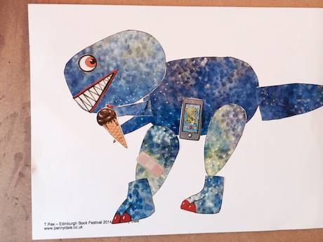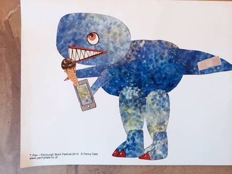 This year we thought Nosy Crow’s Edinburgh International Book Festival jaunt was so epic, we just couldn’t do it justice in a single blog post. So, this one will be the first of a few – and where better to start than the Triassic Era? Penny Dale’s digging, zooming and rescuing dinosaurs made their appearance in Charlotte Square, Edinburgh last week … and they were not alone. After lots of Jurassic-ally fantastic storytelling and quite a lot of shouting like various emergency vehicle sirens, Penny led the audience in the assembly of a dinosaur made out of stickers, so each child would have his or her own dinosaur to take away. On a flipchart at the front Penny stuck parts of the dinosaur, one by one, in the correct place and the audience was encouraged to follow suit on their own sheets of paper. Which, by and large, they did. SOME dinosaurs did have ice-creams, plasters – and even eyes – in some odd places, but that all added to the joy of the event. And who’s to say in a few years we won’t ALL be making dinosaurs that way? There was just time to sing the Dinosaur Song, complete with ROARING and plenty of teeth/claw/digger mimes before the time was up. My 5 year old self would have instantly dropped to the floor and had a tantrum. My 38 year old self ALMOST did. Everyone was having such a good time singing and dinosaur-decorating I don’t think I was ready for it to be over…
