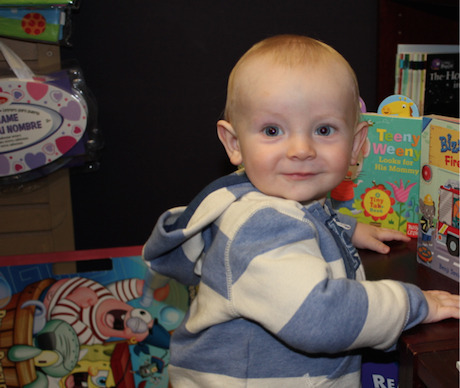 My husband and I have always been enthusiastic readers. When we decided to have a baby, we knew we had some book shopping to do. By the day our son was born he already had a large collection of books waiting for him. We started reading to him on his first day home from the hospital. To get him started we showed him high contrast black and white images, which he was fascinated by. We looked forward to the day when he would begin interacting with books as he got older.