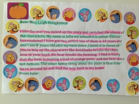 A little while ago, we heard from Tini Prato, a teacher at a school in Austria, who’d been reading Goldilocks and Just the One Bear, by Leigh Hodgkinson, to her class. We asked her what her students had made of it, and this is what she told us: