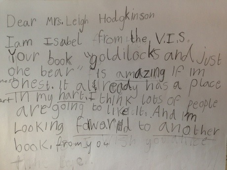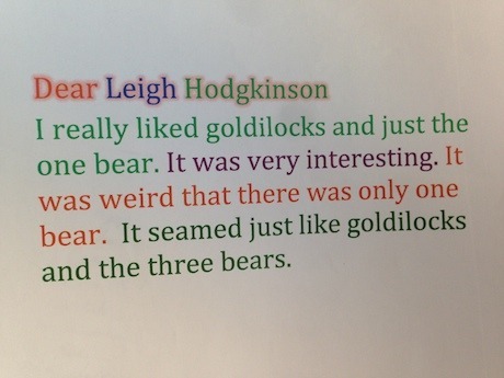 “About two months ago I read the story of Goldilocks and Just the One Bear to a group of Grade 3 children.We talked about the illustrations and the twist in the story and what the children thought about it. After our discussion, as a part of my language lesson, I asked them to write a letter to the author and tell her what they think about the story. We spoke briefly about actual letter writing and what should be included, but the focus was more on getting their thoughts and not to correct every spelling mistake. I had laptops out and they used the programs totally independently – the whole activity took about 40 minutes. One of my students took action and asked me if I could really send the letters to the author.”