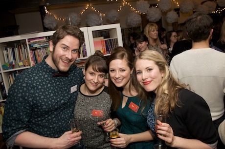 Steven Lenton (who did the picture at the top of this post), Ola, Zoe and Kristina celebrating 2013 at the Nosy Crow Christmas Party