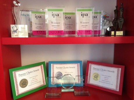 Our awards from our first three years of publishing, for Nosy Crow as a company and for individual books and apps, now require two shelves