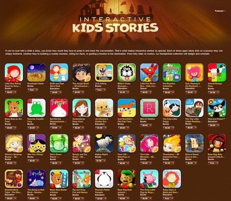 When the Apple App Store launched its kids’ category in October, one of the main sections was Interactive Kids Stories. Of the 38 titles featured in on the US store on launch day, 10 were Nosy Crow’s (our only other app – at the time – isn’t a story). This kind of support from Apple – combined with the excellent review coverage that each of our apps receives and the enthusiastic word-of-mouth they produce – generates unusually strong sales on the store, despite the relatively high price of our apps.