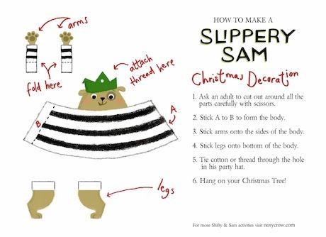 Earlier this month we posted instructions to make this fantastic Shifty McGifty christmas decoration by illustrator Steven Lenton… and not wanting to show favouritism, it seemed only right that we ALSO post instructions to make a decoration for our other favourite robber dog, Slippery Sam, the co-star of Shifty McGifty and Slippery Sam.