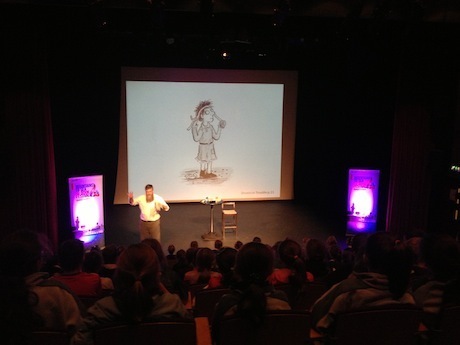 Meanwhile, Bearded Nosy Crow author Philip Ardagh was invited along to delight hundreds of school children with tales of his hilarious series The Grunts, illustrated by Axel Scheffler … and delight he did!