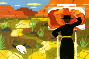 Hello there! I’m Ellen Surrey, an illustrator from sunny Los Angeles, CA. I illustrated This Book Will Make You An Artist for Nosy Crow who reached out after seeing another book I illustrated, Mid-Century Modern Women In the Visual Arts. In the book, there is an illustration of artist Georgia O’Keeffe painting in the deserts of New Mexico. They liked this piece and wanted to replicate the idea by incorporating photographs of real artwork for Ruth Millington’s art history and activity book for kids, This Book Will Make You An Artist.