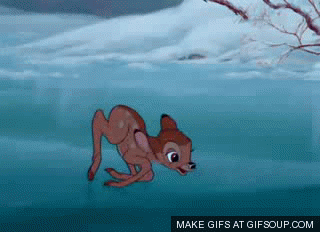 Nah, I’m better than Bambi because I can stay on my feet, but I do tend to sling my arms around a lot.