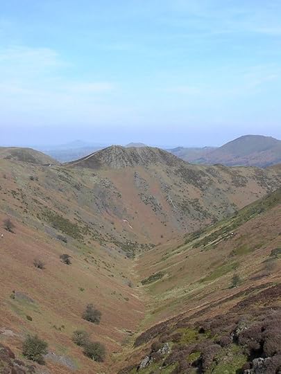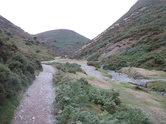 Further up Carding Mill Valley, running along the bottom of the Long Mynd. (My photo)