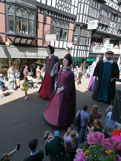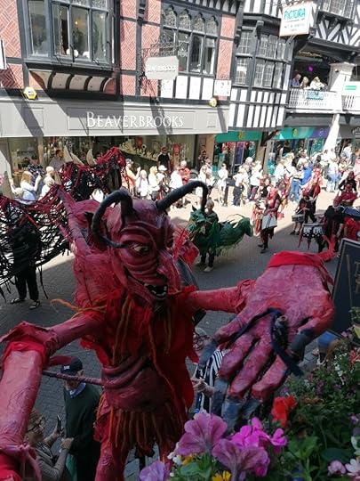 A little while ago, I went over to Chester to watch the Midsummer Watch Parade of giant puppets in town – something which has a history going back 500 years. Those puppets have served as the inspiration for the December (and last) instalment of my Darklings series, although this one is set at the Winter Watch (with which I may have taken liberties!). At present it’s called To the Beat of the Drum, but that may change.