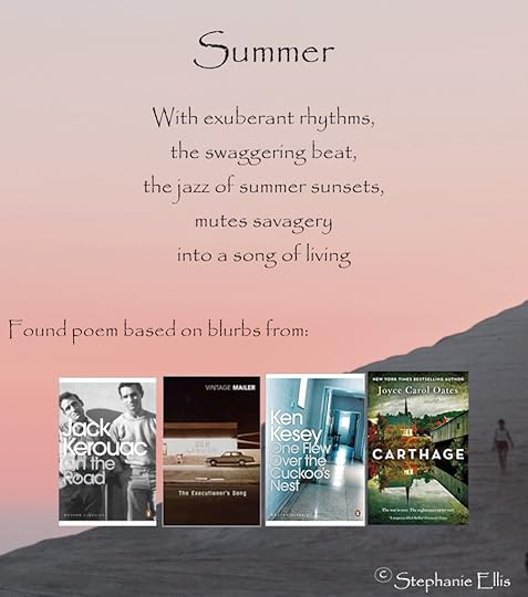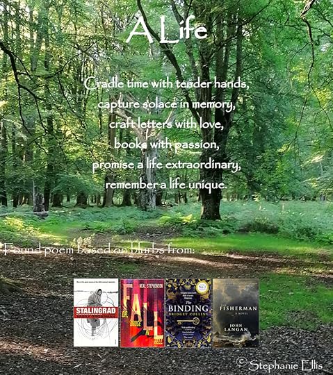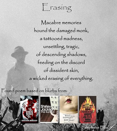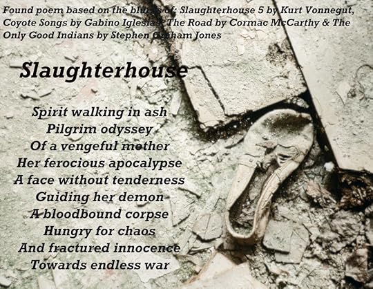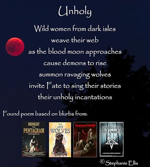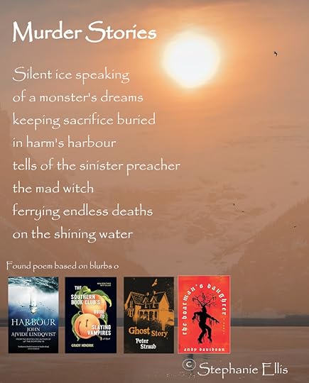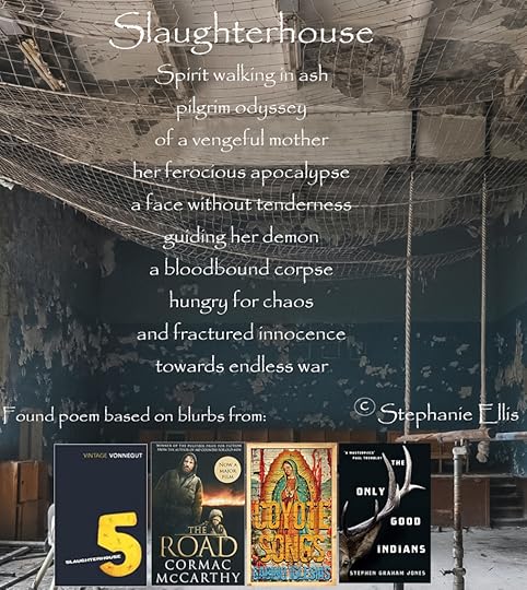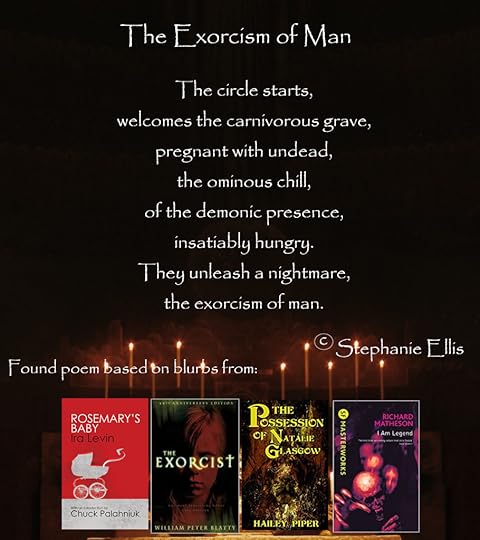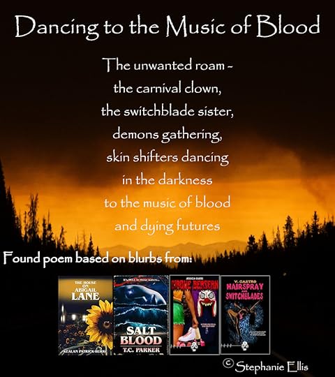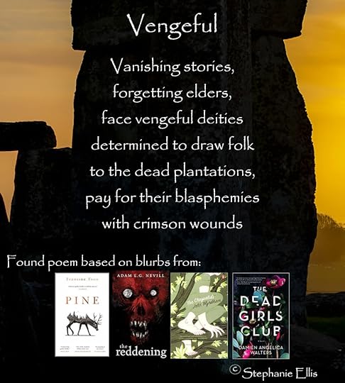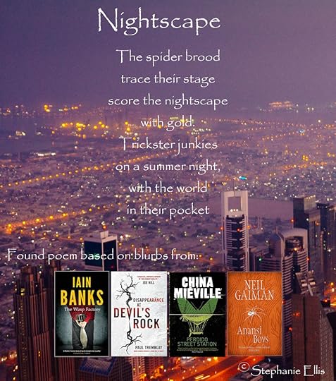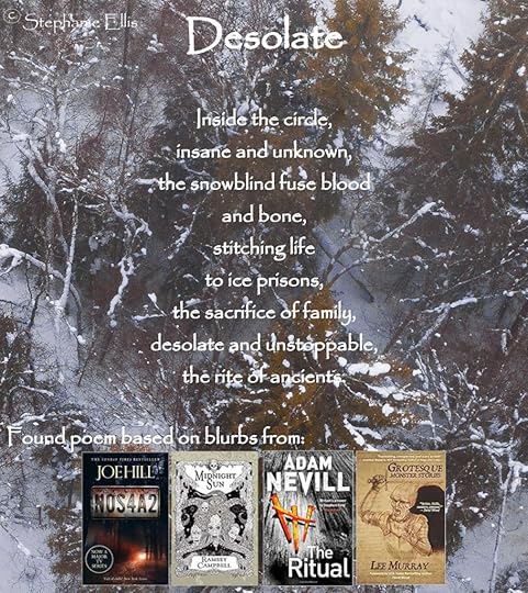 This isn’t the entry, obviously, but it’s my contribution to Day 2 of National Poetry Month and is created via a challenge I set myself last year but never got round to, ie creating a found poem from the blurb of books. All these books grace my shelves and are highly recommended.