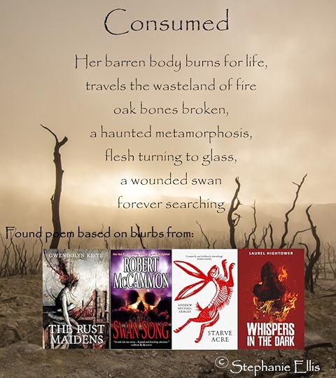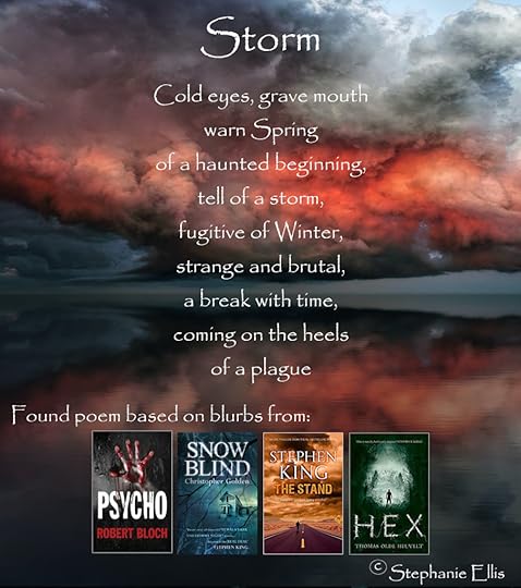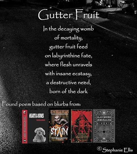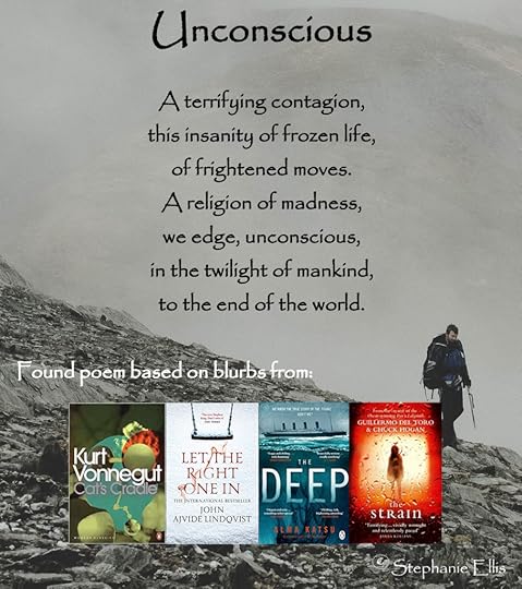 April is National Poetry Month and, never one for sitting back(!), I set myself a challenge of a poem every day. After the first day, I remembered a comment I made to Mike Arnzen last year when I created found poems based on some indie poets’ work. I said I was thinking of creating a found poem from the blurbs of books. Note this is the British context of the blurb being the description on the back of the book – not what I’ve come to realise is regarded as the comment made by another author about said work.