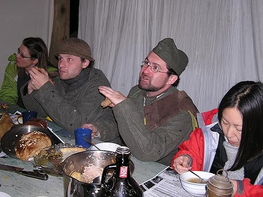 On the home front people were eating squirrel pie, corned beef stew, with bread, hot tea and some Screech to keep them warm. It was dry but chilly though the old stove worked valiantly against the cold November night. Gas masks lay at the ready, along with copies of the newspapers whose headlines are all about the war. The sentiments on the home front varied as people are thinking more about the future and not just surviving the elements and the enemy. Several troops home from the war reported "War is horrid," as well as the feverish lad who told me "I miss my mommy almost as much as I miss my left leg." Other returning soldiers shared their revulsion with "The trenches are like graves," "They're fetid," or such epithets as "The Italians suck seagulls," and the rest is not printable.