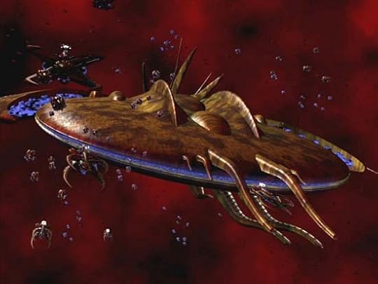 In appearance, the Vorlons look like they might have a humanoid figure because of how their encounter suits are arranged (above left). Otherwise, they will take on the appearance of whatever species they visit, but with typical angel features (i.e., halos, inner light, wings, etc.). But without these pretenses, they look like energy-beings with squiddy-like profiles, and their ships (middle and right) look much the same since they are based on organic technology.