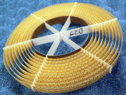The Duke cloaking device, pictured at left, is composed of metamaterials – an artificial, man-made material that almost always have a negative refractive index. A negative refractive index allows for the creation of some interesting things, such as superlenses that go beyond the diffraction limit; or in this case, invisibility cloaks. Due to their unusual index, they are capable of refracting light around an object so a viewer does not see the object, but what is behind the object.