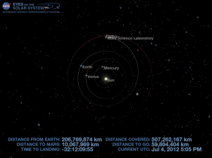 Curiosity’s position and distance to Mars as of July 4th, 2012 (NASA)