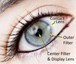 The concept calls for contact lenses that enhance normal vision by allowing a wearer to view virtual and augmented reality images without the need for bulky apparatus. One of the obvious advantages of this is the ability to get around easily while interacting with virtual images. But in addition, they also will help a person focus on both near and distant objects.
