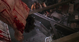 The police raid the building to find all but one man eviscerated. Harrington pursues the remaining one to the roof where he corners the last man, who loses it when he sees an apparition and begins shooting. Harrington shoots him down, sees the same apparition, and reasons that the heat is causing him to lose his mind.