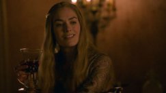 Meanwhile, Cersei ferries Sansa and all the women retainers into a hall where they take shelter and waits things out. True to form, she has several cups fo wine and begins acting like a total bitch, telling Sansa off and wallowing in self-pity about her life. Rather than let her son do his duty and defend the gates, she has Ser Kevan take him from the battle and then leaves the women to their fate when it is said that the gates have fallen.