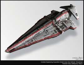 Produced by the Corellian Engineering Corporation (natch!), the Strident-class was the first breed of Super Star Destroyer to serve on the side of the Alliance (which now called itself the New Republic). But of course the Alliance didn’t like the term “destroyer” when applied to their mega ships, hence the name change. But the particulars are pretty much the same.