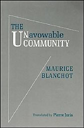The unavowable community: does that mean that it does not acknowledge itself or that it is such that no avowal may reveal it, given that each time we have talked about its way of being, one has had the feeling that one grasped only what makes it exist by default? So, would it have been better to have remained silent? Would it be better, without extolling its paradoxical traits, to live it in what makes it contemporary to a past which it has never been possible to live? Wittgenstein's all too famous and all too often repeated precept, "Whereof one cannot speak, there one must be silent"—given that by enunciating it he has not been able to impose silence on himself—does indicate that in the final analysis one has to talk in order to remain silent. But with what kinds of words? That is one of the question this little book entrusts to other, not that they may answer it, rather that they may choose to carry it with them, and, perhaps, extend it. Thus one will discover that it also carries an exacting political meaning and that it does not permit us to lose interest in the present time which, by opening unknown spaces of freedom, makes us responsible for new relationships, always threatened, always hoped for, between what we call work, oeuvre, and what we call unworking, dèsouevrement.