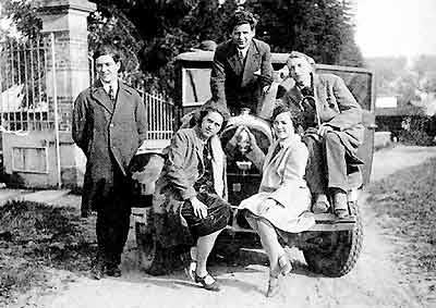 Levinas, sentado en el tope del carro, con Blanchot a su derecha. La foto sale en la biografía de Levinas escrita por Salomon Malka.