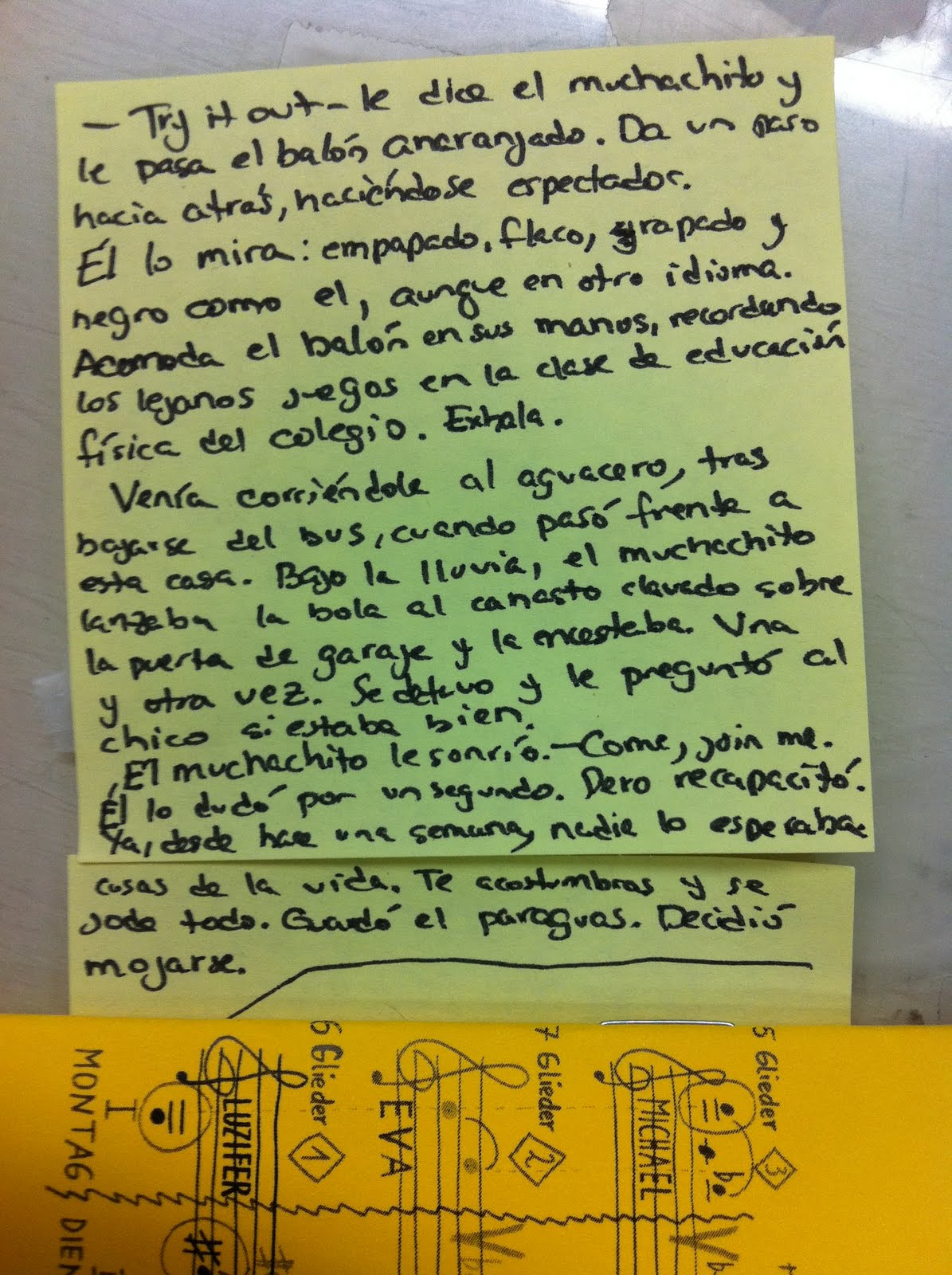 Venía corriéndole al aguacero, paraguas en mano, tras bajarse del bus, cuando pasó frente a la casa. Bajo la lluvia, el muchacho lanzaba la bola al canasto, clavado sobre la puerta de garaje y la encestaba. Una y otra vez. Chup, plaf.