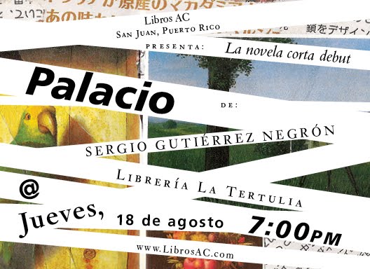 Con una propuesta que hilvana diferentes géneros, hace su debut como novelista Sergio Gutiérrez Negrón con el libro Palacio. Esta novela corta cuenta la historia de un joven estudiante puertorriqueño en Atlanta que, luego de dos años, se reencuentra cibernéticamente con su esposa desaparecida.