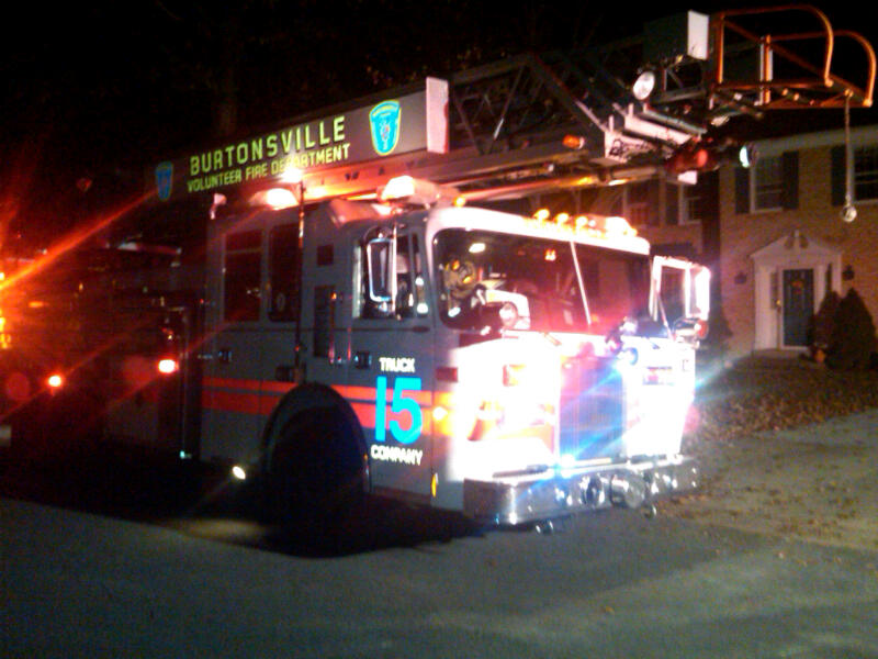 Back at the station while we were shooting the breeze, the station alert sounded for an adaptive response. More than an investigation but less than a full box, two engines and a truck were dispatched for the odor of smoke. The ladder truck with Mike in the seat again, was first arriving and positioned on Side A while the engine laid out from the closest hydrant. Seconds after I had exited the truck, two ladders were up on the A side of the house and the engine company was beginning to stretch an attack line, the four inch supply line trailing back to the plug. The second due engine from PG came in and stood by the hydrant. It was wonderful to watch; poetry in motion. It wasn't anything special, but it was fabulous to watch the basics perfectly executed with no conversation or orders. With only a burned up electrical socket to deal with, we were back in service in just a short time.