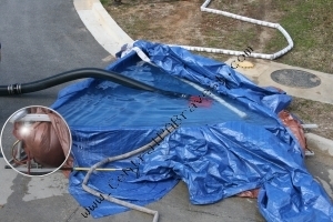 Secure 3 roof ladders with their hooks and some rope and throw a salvage cover over top.