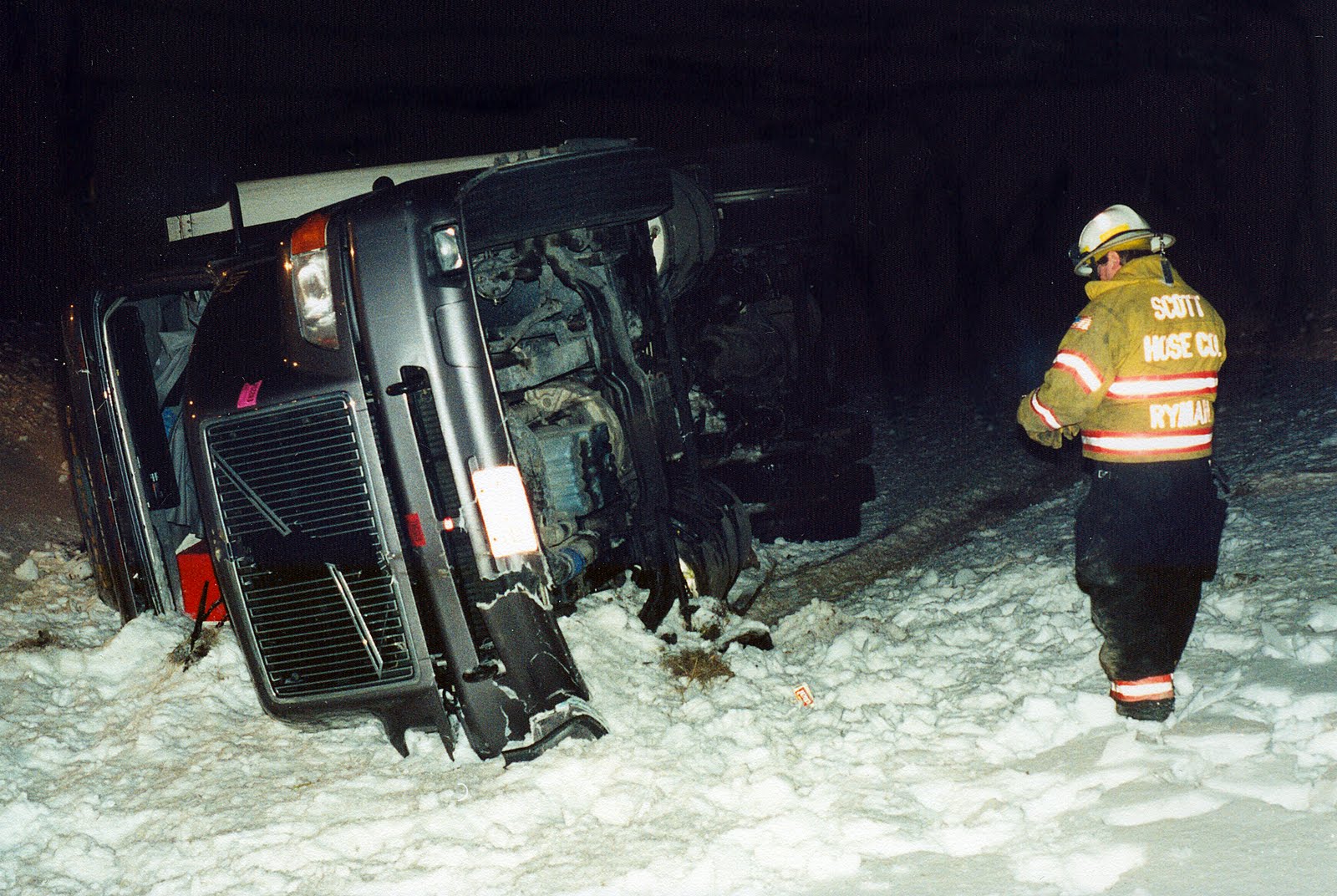 One weekend morning, I heard a call come in over the scanner for a motor vehicle accident at Route 26 and Carl Street, and begged my father to take me down to it. In those days, the fire department was not automatically dispatched on automobile accidents. Initially reluctant, he relented, and we drove over, much too slowly for me. Upon arrival, I saw a car with the front end smashed and wrapped around a telephone pole. Walking over, I saw a burlap bag over the driver's window. A man, a passerby it seemed, stood by the side of the car retching. As I approached the car, he said, "You don't want to look."I know that, but I have to. It's my job now.